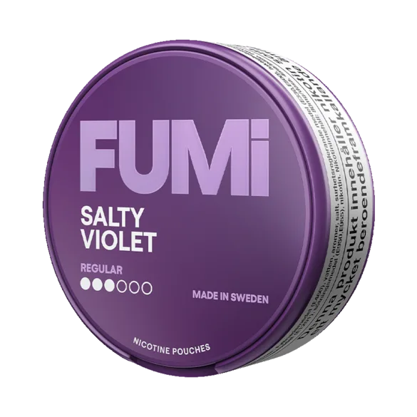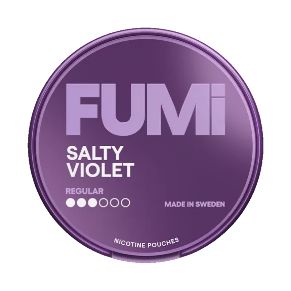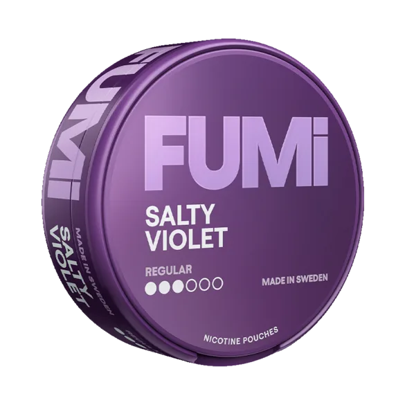 FUMi Salty Violet Regular, från varumärket FUMi och tillverkat av Helix Sweden, från FUMi, tillverkad av Helix Sweden, är ett vitt snus. Produkten kommer i slim-format, är tobaksfri men innehåller nikotin och klassas som normal.