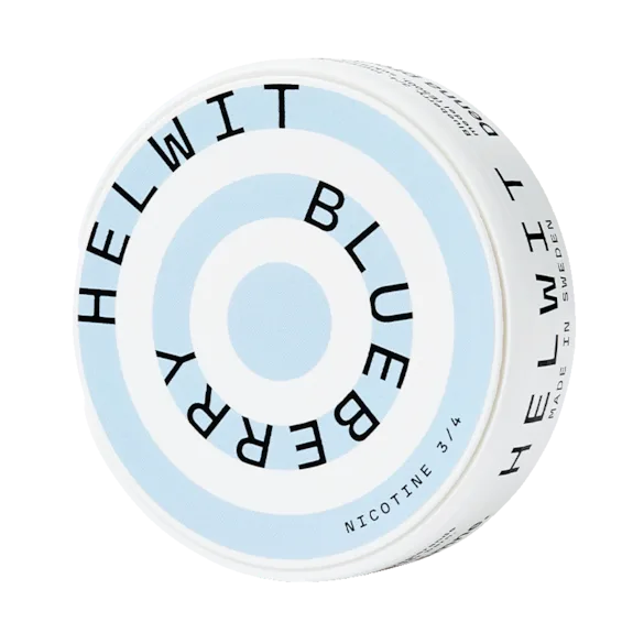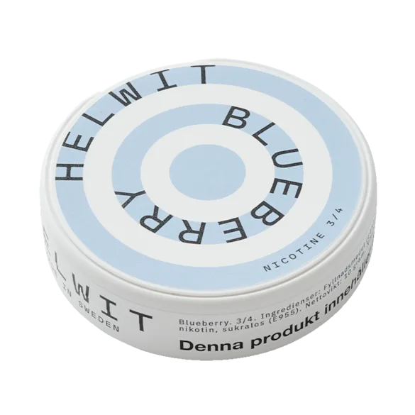 Helwit Blueberry 3 har en smakprofil av blåbär i slim-format. Nikotinhalten är 4,5 mg per portion och 9 mg per gram, vilket ger en normal profil.